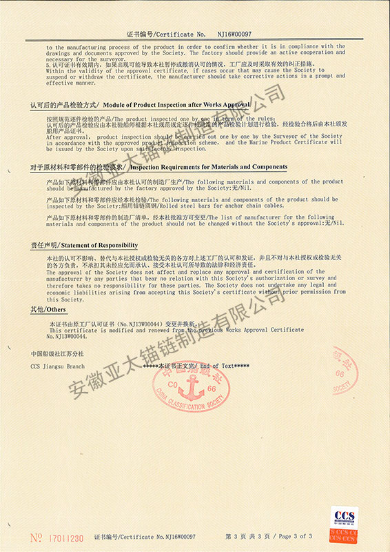 安徽亞太錨鏈制造有限公司是國家高新技術(shù)企業(yè),也是國家GB/T 549-2017《電焊錨鏈》標(biāo)準(zhǔn)的起草和制定單位之一。公司旗下設(shè)有錨鏈分廠、浮標(biāo)分廠、舾裝件分廠等多個(gè)分廠。公司專業(yè)從事φ12.5mm-φ107mm二、三級(jí)船用錨鏈、浮標(biāo)錨鏈、錨鏈附件,錨、船舶曬裝產(chǎn)品、航標(biāo)、系船浮、船型標(biāo)、多種規(guī)格海洋監(jiān)測浮標(biāo)及航標(biāo)燈等產(chǎn)品的生產(chǎn)、安裝和服務(wù)。目前公司的產(chǎn)品銷往全國各地船廠、碼頭、航標(biāo)處、航道局、海洋局,并已走上國際市場,如東南亞、中東、歐美等國家。